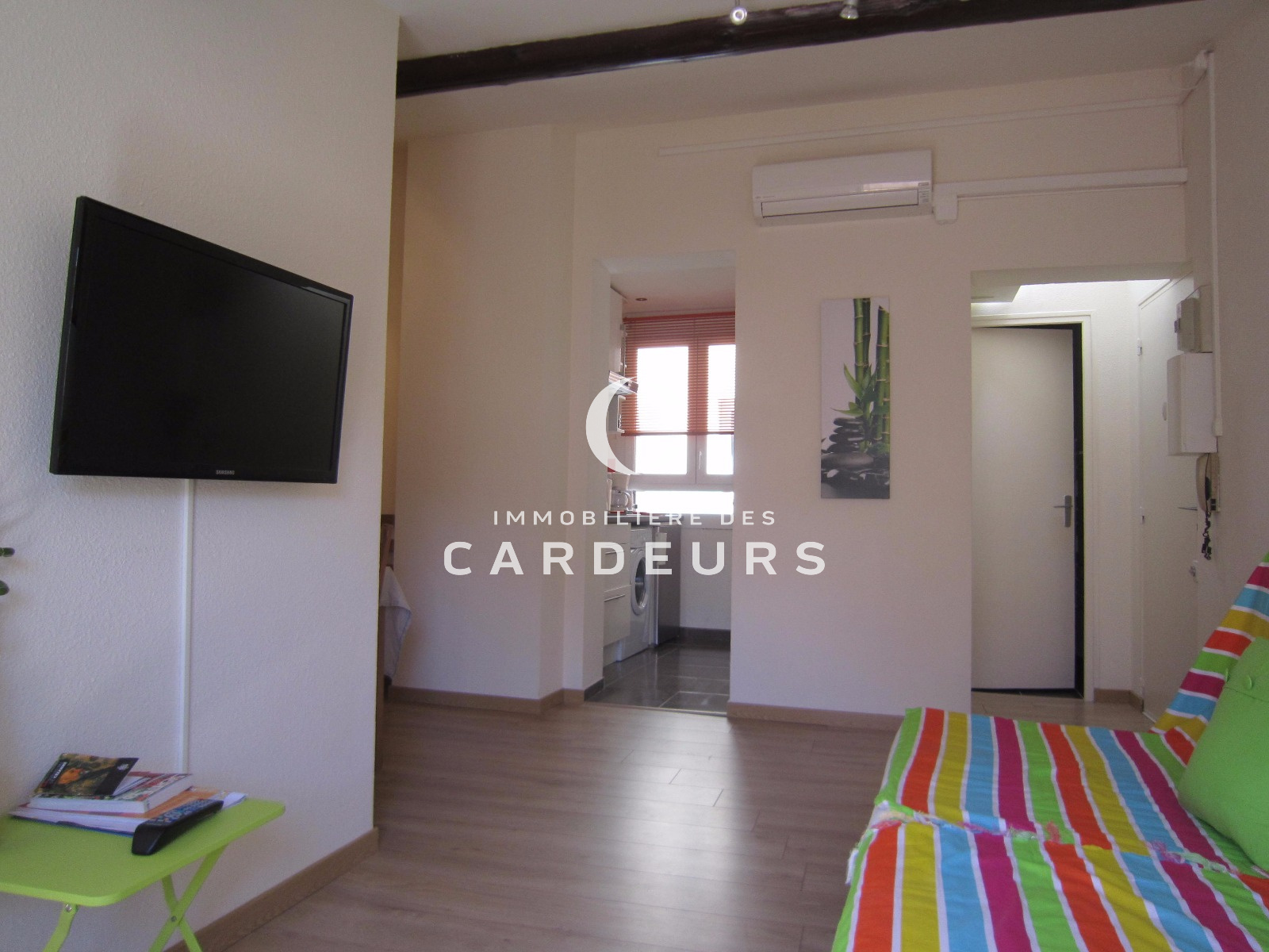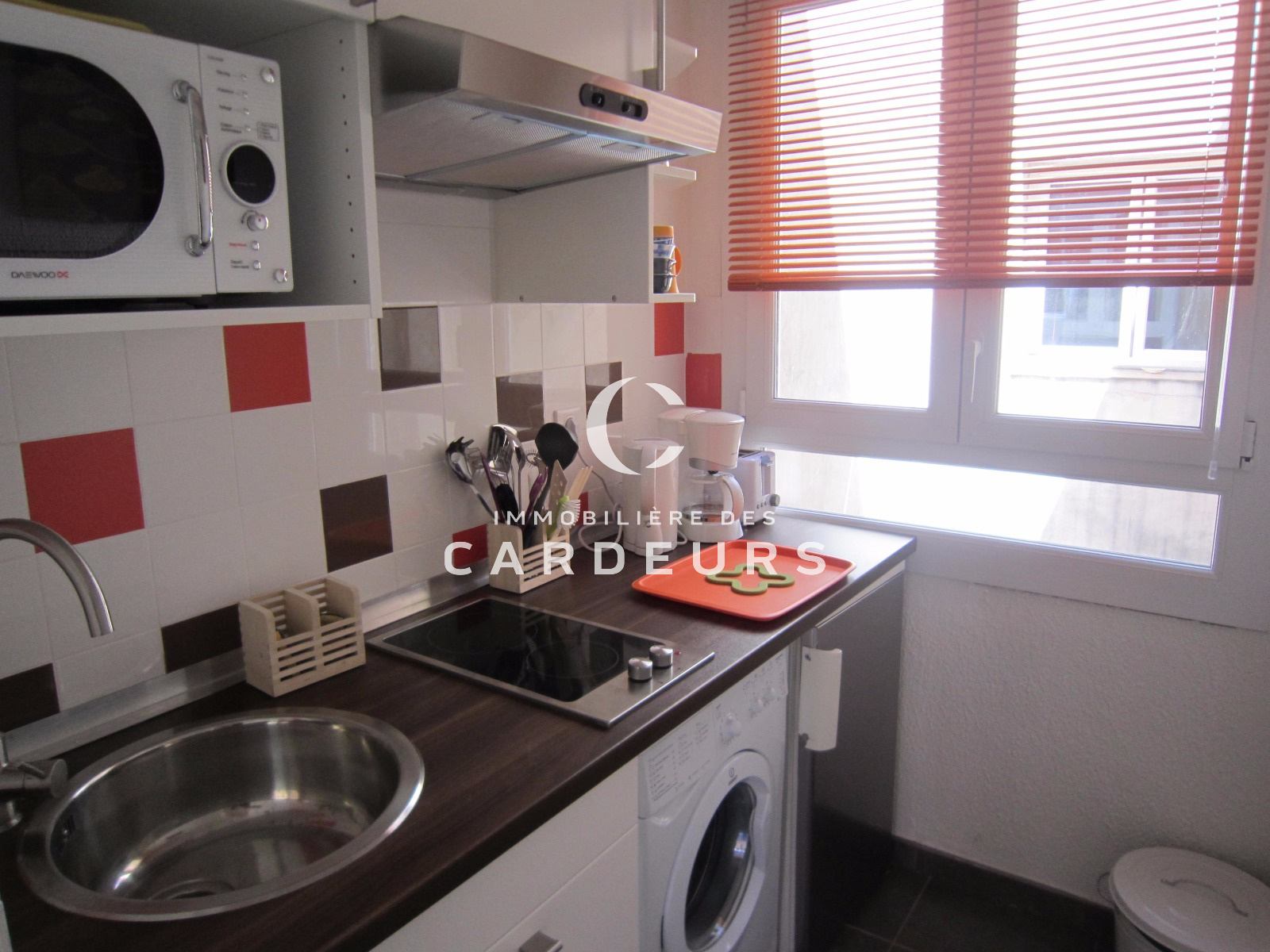 L'Immobilière des Cardeurs vous propose la location d'un appartement en dernier étage de type 2 meublé de 35m² avec terrasse, comprenant grande pièce principale avec rangements, cuisine individuelle équipée, une chambre avec placard, une salle de bains avec wc. Très belle terrasse donnant sur séjour et chambre. Loué meublé 760€ + 38 € de provisions/charges par mois, soumises à régularisation annuelle - Dépôt de garantie : 1 520€. Honoraires d'agence : 455 € (Visite, constitution de dossier et rédaction du bail : 295 € - état des lieux d'entrée : 105 €). Très lumineux.
