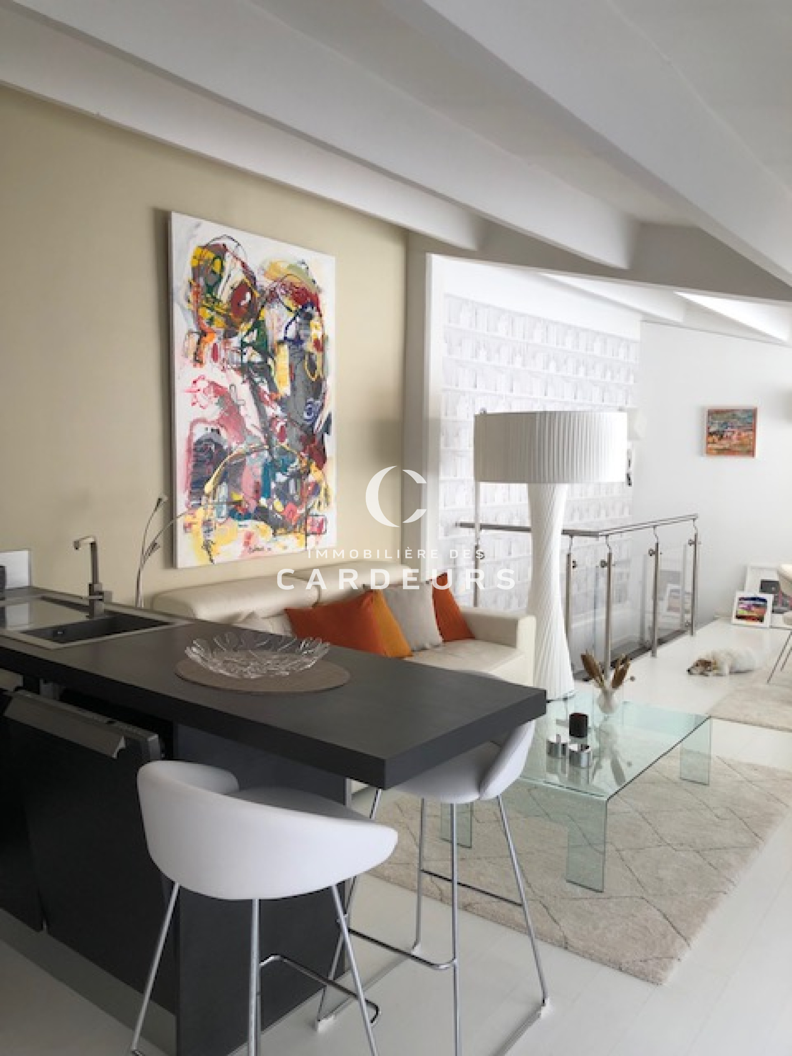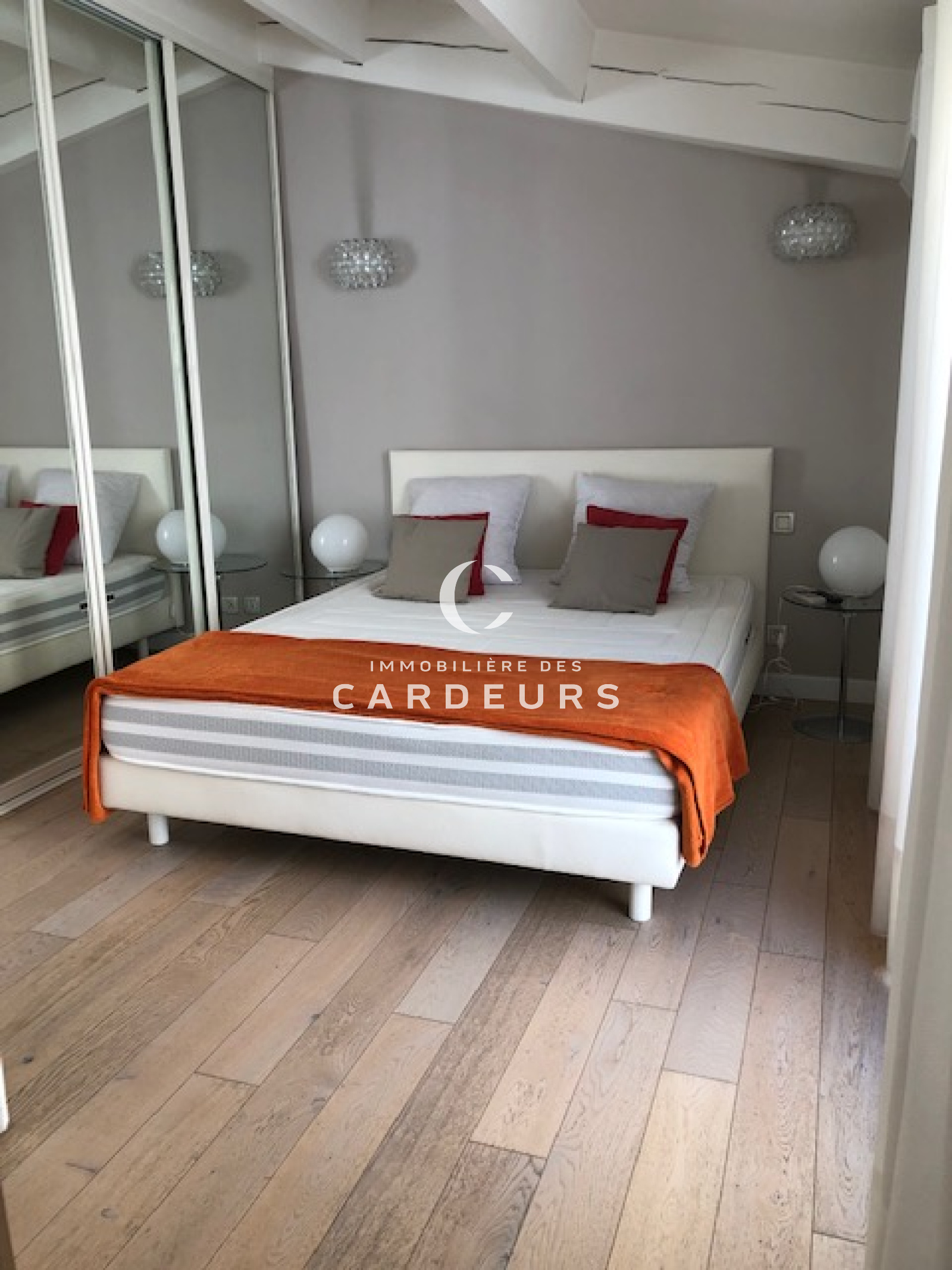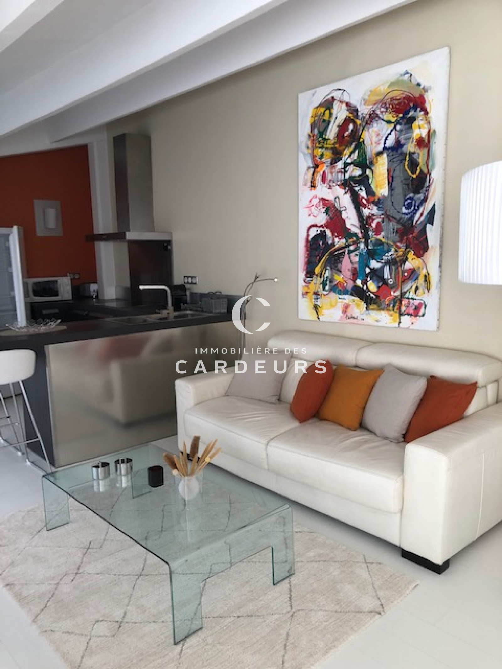 L'Immobilière des Cardeurs vous propose en plein coeur du centre ville, un magnifique appartement de type 2 entièrement meublé avec terrasse de 27 m², comprenant un hall d'entrée avec loggia et machine à laver, une grande pièce principale avec cuisine ouverte entièrement équipée avec grandes baies vitrées donnant sur la terrasse, une chambre avec salle d'eau attenante donnant également sur l'extérieur. Appartement moderne, type loft, en parfait état. Climatisation, double vitrage. Rare à la location. Loué 1 500 € + 100 € de provisions de charges avec régularisation annuelle. Dépôt de garantie: 1 600,00 €. Honoraires d'agence : 650 € ( visite, constitution du dossier, rédaction de bail: 500 € + état des lieux: 150 €). A voir absolument.