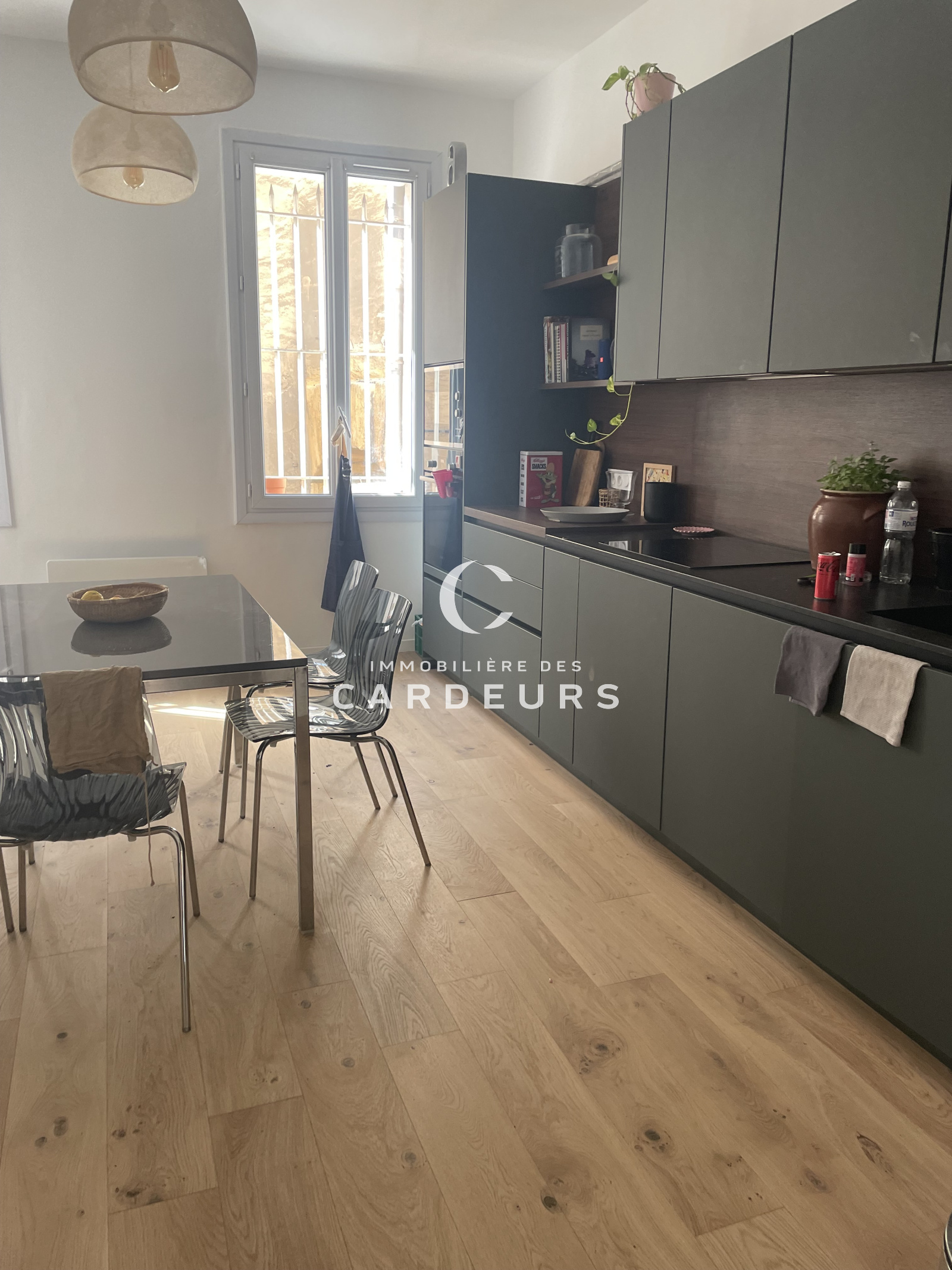 L'agence des Cardeurs vous propose la vente à Aix en Provence, centre ville, proche Mairie, un superbe appartement de type 3 entièrement rénové par architecte avec des prestations de standing au style contemporain.
