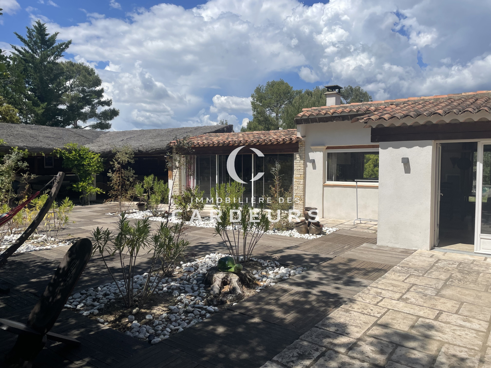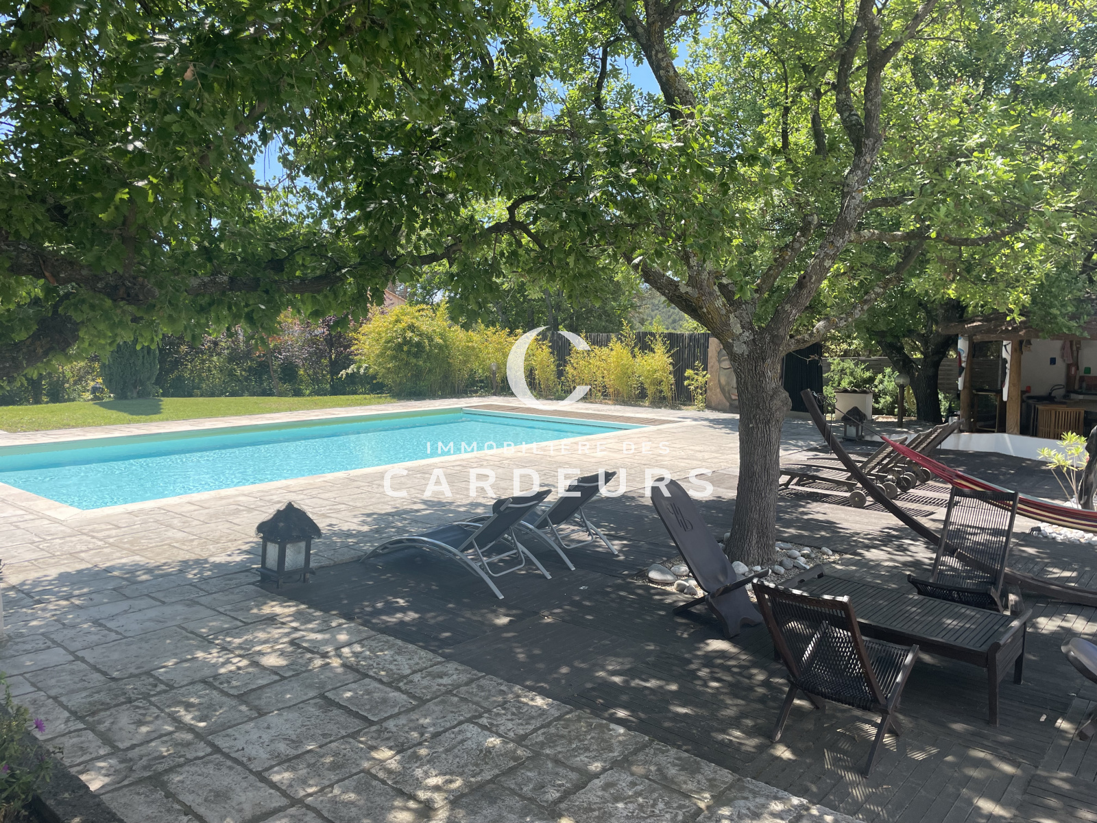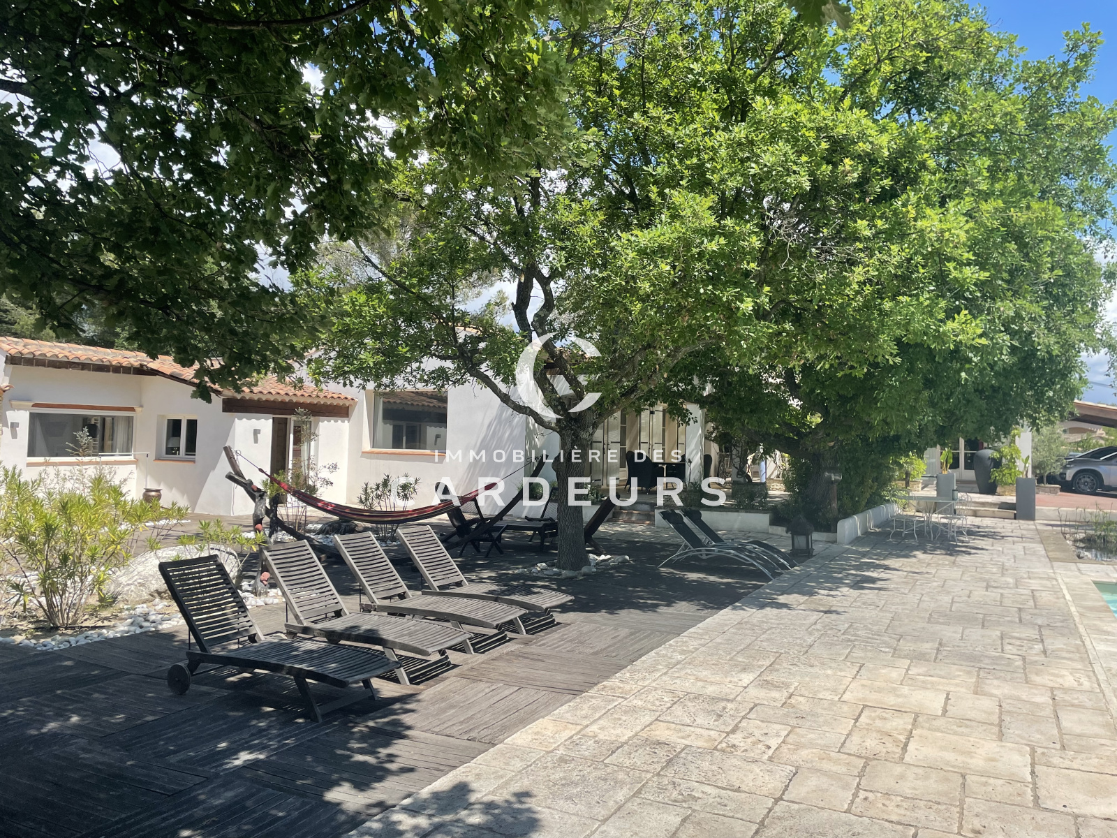UNIQUE, Eguilles proche village, dans un quartier résidentiel prisé et dans un environnement calme, paysager et sans vis à vis . Sur 3 400m² de terrain avec une piscine de 12X6, garage de 70m² ainsi que de nombreuses annexes ( cuisine d'été, salle à manger, bar, espace relaxation, jacuzzi, terrain de boules et de voley ball). L'Immobilière des Cardeurs vous propose la vente d'une Maison individuelle de plain -pied de 400m² habitables actuellement constituée de 3 logements pouvant etre réunis en une seule habitation, comprenant à ce jour un bâtiment principal de 250m² habitables de type 7 avec séjour de 70m², cuisine indépendante, 4 chambres, salle d'eau, salle de bains, bureau, 3wc. Et attenant, un type 3 de 93m² avec terrasse et un type 2 de 55m² avec chacun un jadin privatif et accès indépendant.